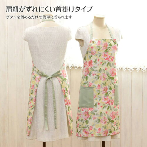 エプロン おしゃれ 清涼感 水彩画 淡い パステル ファブリック ヒメリンゴ ロマンティック 花柄 首掛け 保育士 かわいい 【メール便対応】