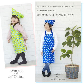 【アウトレット】【日本製】【子供】ぞうさん柄キッズエプロン 三角巾セット 100 130 男の子 女の子 ゴム ギフト プレゼント おしゃれ かわいい【メール便2枚まで対応】【N】【Y】